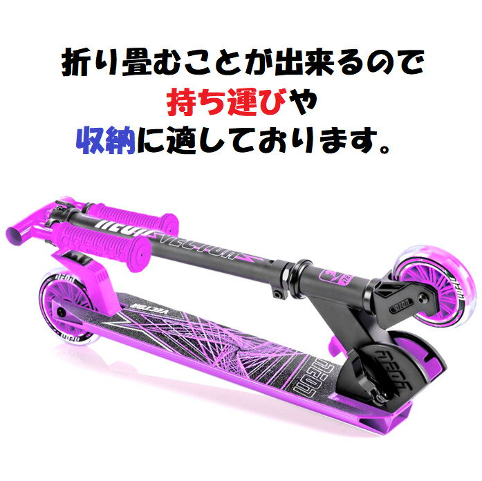 LEDライトアップ 軽量 キッズスクーターグリーン・緑色折り畳み可能で持ち運びに便利対象年齢:5〜9歳最大重量:60キロ電池不要のLEDライトアップホイールキックボード ネオンベクター